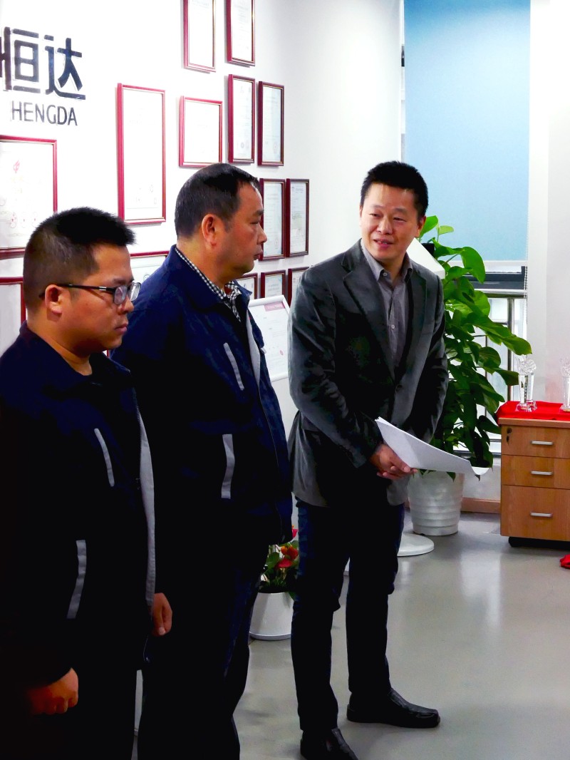 董事長兼總經理潘誌東向獲獎員工表(biǎo)示祝賀,並總結了4位先進標兵的先進事跡和他們身上熠熠生輝的優秀品質。潘誌東總經理表示,不(bú)忘初心、致敬功臣,是恒達表彰先進的初衷。這次(cì)獲獎的有自願帶兵的老員工,也有嶄露頭角的年輕人,還有核(hé)心的骨幹成員,表彰不僅僅是(shì)對過(guò)往的(de)獎賞,更重要的是對將來的鼓勵,希望獲獎員再接再厲,用持之以(yǐ)恒(héng)的奉獻精神為公司增光添彩。