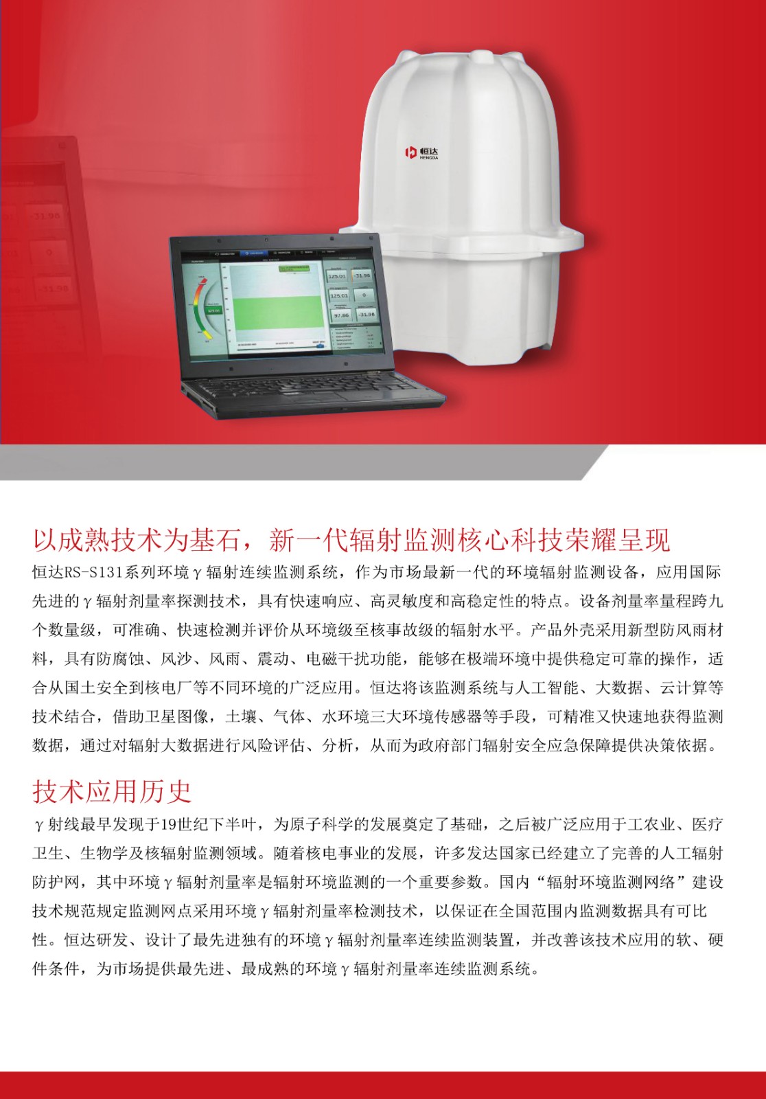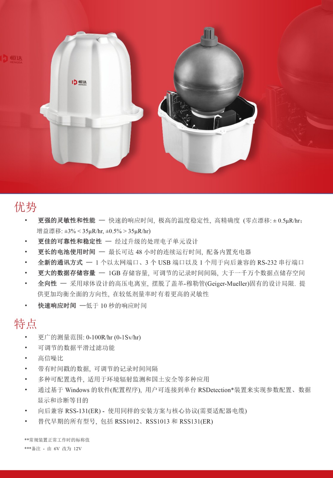 本產(chǎn)品為新一代的環境輻射(shè)監測設(shè)備,在低劑量水平伽馬輻射的探測和測(cè)量方麵提供了更加卓越的技術與表現。本產品繼續沿用前代產(chǎn)品的環境γ輻射劑量率監測技術,但在以下多個關鍵(jiàn)領域進行了改進:靈敏性、可靠(kào)性、穩定性。本產品采用新型防風雨外殼,電子器件(jiàn)和診斷原件都進行了更新,能夠在(zài)極端環境中提供穩(wěn)定可靠(kào)的操作,非常適合從國土安全到核電廠的各種廣泛應用。